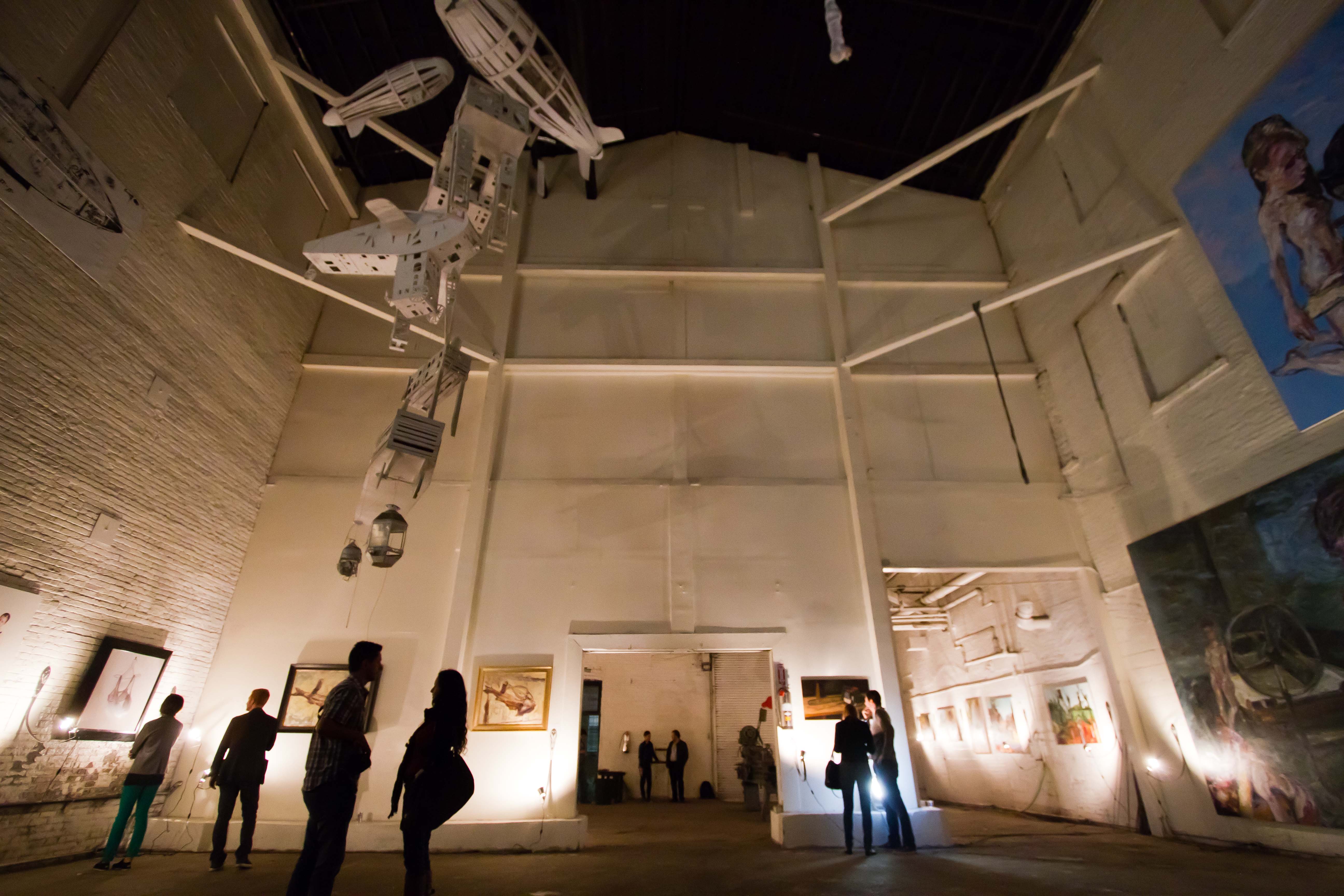 Gowanus Ballrooom is one of my very favorite spaces, one I can’t help updating and re-writing about again and again. (In fact, check out my article from their Fall 2011 show “Paint Works” on Gowanus Your Face Off!) The space, most of the time, is home to Serett Metalworks, but three or four times a year it gets transformed into a massive art spectacle. They’re doing so much to make a home for emerging and underground artists in New York, and every one of their shows is spectacular—and necessarily ambitious, given the sheer scope: the Ballroom is 16,000 square feet on two levels, with 50-foot ceilings. You have to slink down a super-sketchy dark alley on the canal to get to it, but oh, man, is it worth it.