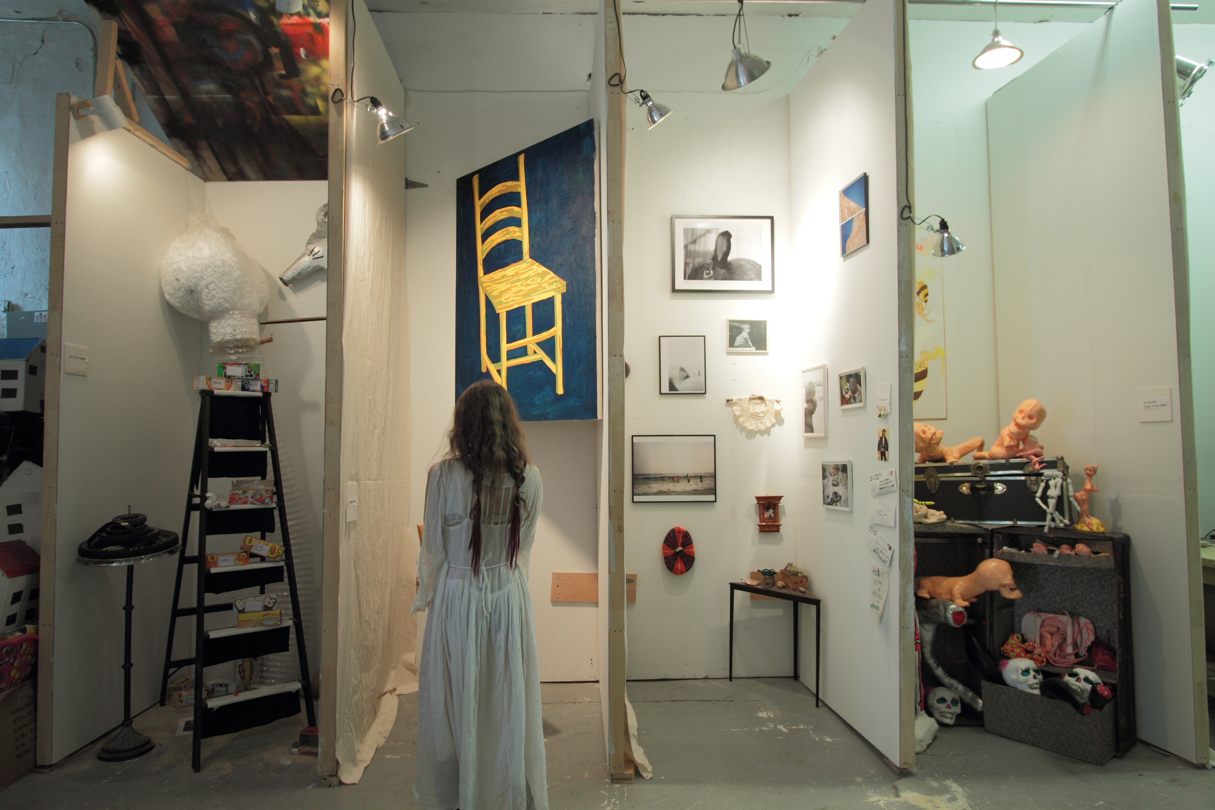 During this year’s Bushwick Open Studios, I had an ambitious roster of spaces to hit, and by a fortuitous chance, one of those was Hive NYC, a nonprofit multidisciplinary art space that is home to a collective of musicians, visual artists, writers, actors, photographers, and aerialists. There was fantastic art on display, by Jewel Lim, Tamar Meir, Our Guy, Sigal Arad Inbar, and Fumie Eshii. And the artists who were there—Yula, Isaac, Kate, and Melanie—were just amazingly warm and welcoming.