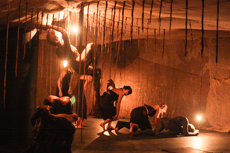 Currently the Cave is being used as a set for an immersive dance performance called “The Cave: Archaic Remnants and the Methods of Transfer.” That name encompasses the space (the Cave), the dancers (Archaic Remnants), and the musicians (Methods of Transfer). The set, sculptures, and installation were designed by Laura Cuille, and nearly a dozen artists contributed music, dance, choreography, and more.