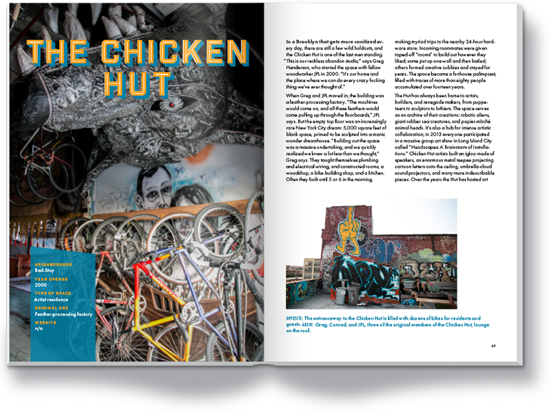 You can read some teaser posts here on the site, but the book includes tons of new spaces, new photos, new interviews, and new research into the history of these eclectic and wonderful places. It presents a chronicle of a thriving and ever-renewing cultural scene, a creative renaissance in all its stranger sprawling glory.