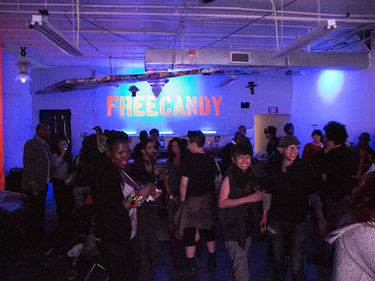Steve: A few years ago we did one called “Dante’s Inferno” in collaboration with the theatre collective Augenblick. It started in the city and went through the Nine Circles of Hell on the way here. The first and second were in Union Square, the third was on the L train platform, the fourth and fifth were in the Lorimer station, the sixth was on the G train at the Classon stop, and then on down the hill. When people approached 12-turn-13, we had all these performers out on the street: fire throwers and twirlers and a nine-foot monster. And then you came inside and the entire space was decorated to be Hell. People walked in through a green screen, and their images were projected in flames elsewhere in the space. It was incredible.
